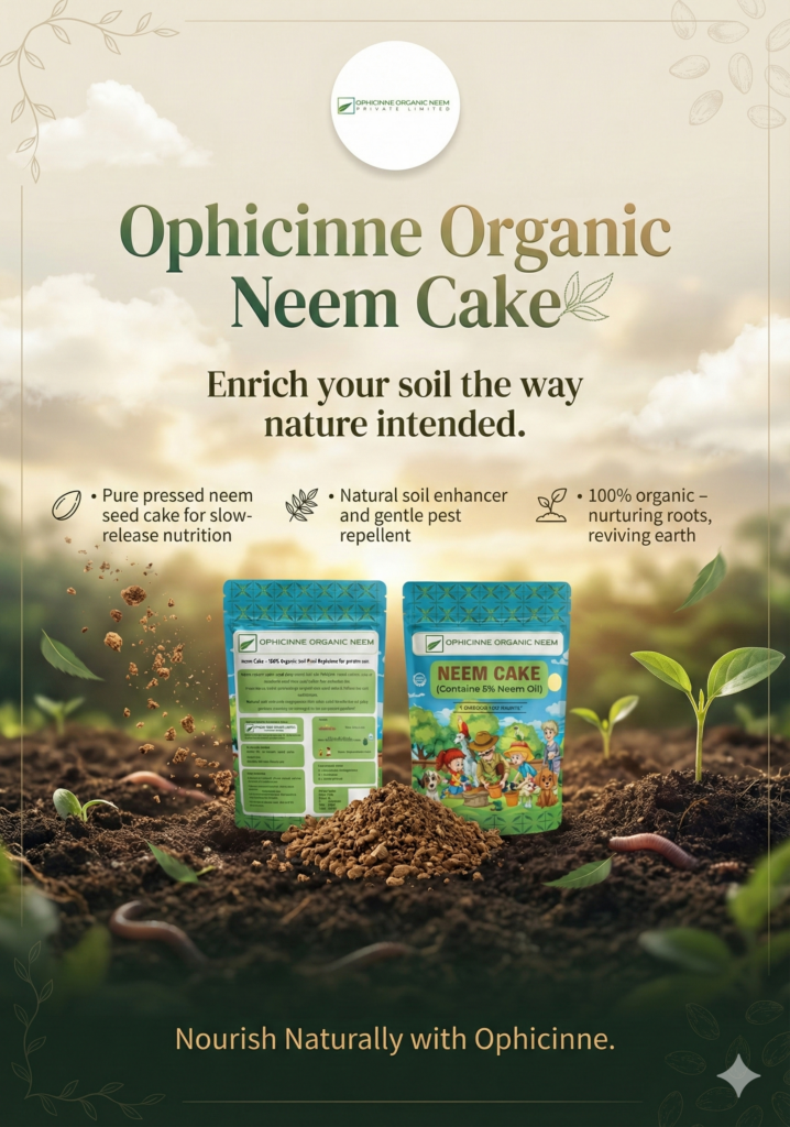 Standard vermicompost is made by earthworms decomposing organic matter (cow dung, leaves, etc.). Ophicinne Neem Vermicompost takes this process a step further. We introduce Neem Cake into the composting process. The earthworms digest this mixture, and the resulting castings are enriched with the properties of neem.